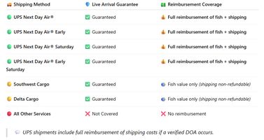 Live Arrival Guarantee & DOA Protection Policy. The Best DOA Policy in the Fish Industry.