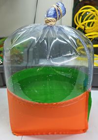 Each bag secured with castration bands and rubber bands